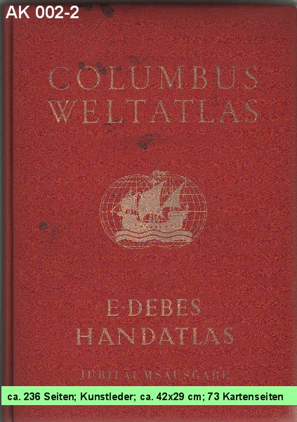 COLUMBUS WELTATLAS E-DEBES HANDATLAS JUBILÄUMSAUSGABE 8 Vor- und 73 Kartenseiten sowie 155 Seiten "Alpabetisches Namen-Verzeichnis" |
