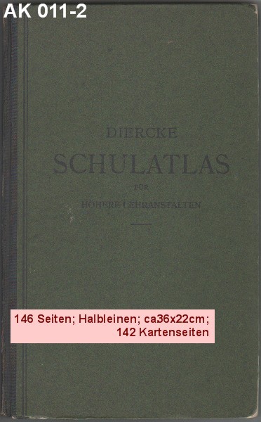 DIERCKE, SCHUL-ATLAS FÜR HÖHERE LEHRANSTALTEN GROSZE AUSGABE Achtundsechzigste (68.) Auflage. |