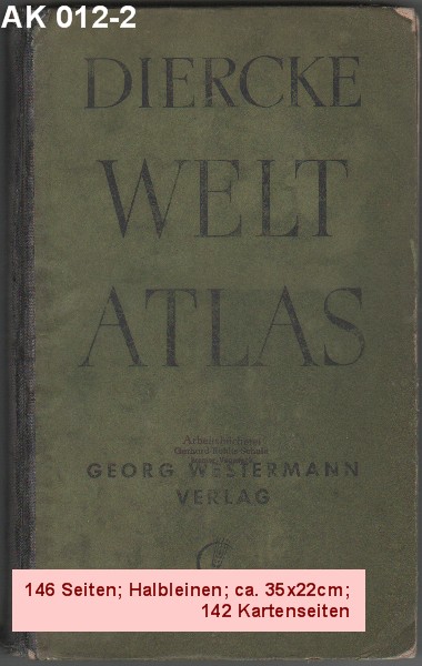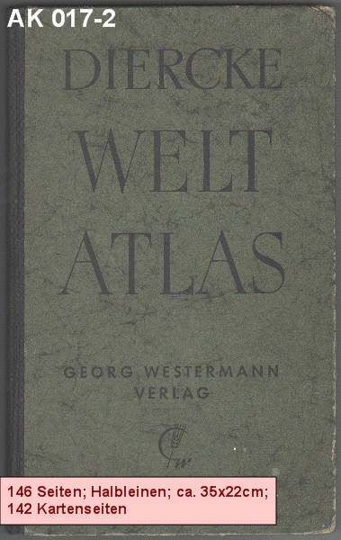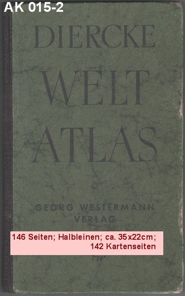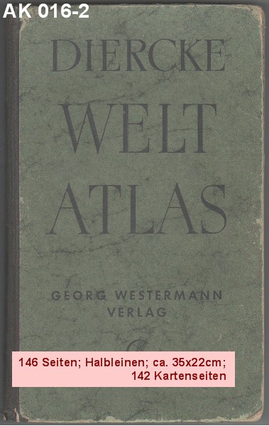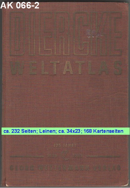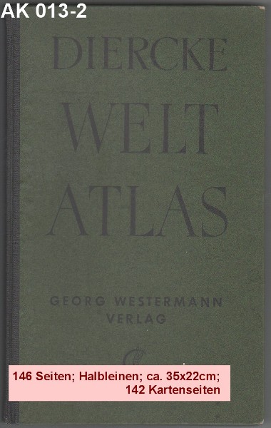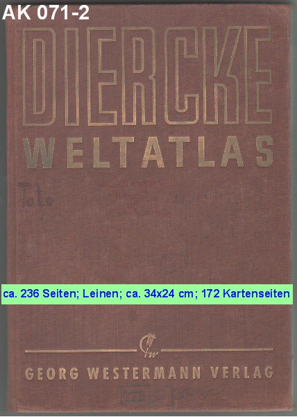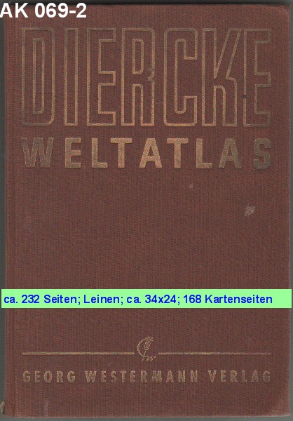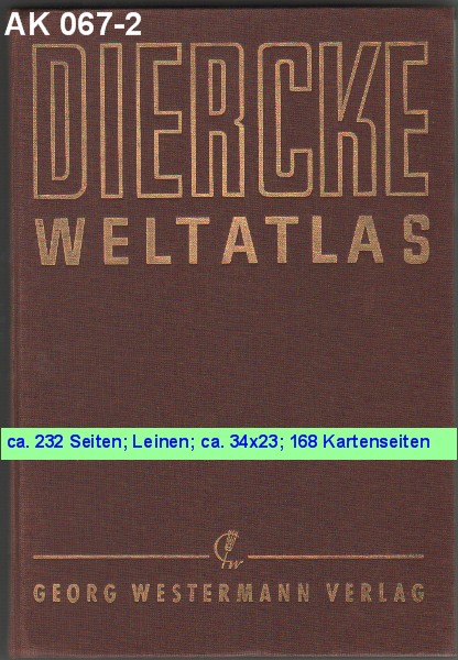 DIERCKE WELTATLAS 23. Auflage der Neubearbeitung 168 Kartenseiten und 64 Vor- und Registerseiten. 125 Jahre 1838 - 1963 Georg Westermann Verlag |