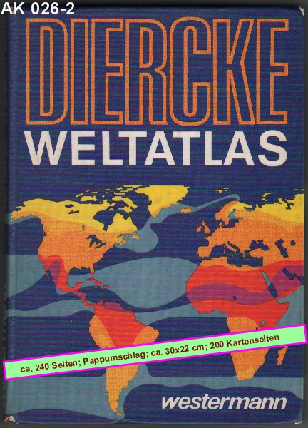 DIERCKE WELTATLAS Stand der Kartenbearbeitung: Ende 1978 35.-37. Auflage der Neubearbeitung 200 Kartenseiten und 40 Vor- und Registerseiten. |